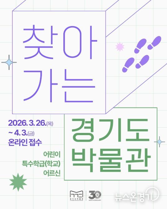 뉴스온경기 | 경기문화재단 경기도박물관은 오는 4월부터 11월까지 문화소외계층을 직접 찾아가는 체험 교육 프로그램인 ‘2026 찾아가는 경기도박물관’을 운영한다. 참여를 희망하는 기관은 오는 3월 26일부터 4월 5일까지 경기도박물관 누리집을 통해 신청할 수 있다.