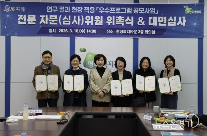 뉴스온경기 | 평택복지재단은 2026년 3월 18일, 팽성복지타운에서 관내 사회복지 서비스의 질적 도약과 지역복지 강화를 위한녪년 연구 결과 현장 적용 우수프로그램 공모사업’심사위원 위촉식 및 대면 심사를 진행했다.