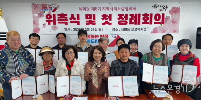 뉴스온경기 | 오산시 세마동 행정복지센터는 지역복지 증진과 민관 협력 강화를 위한 ‘세마동 제6기 지역사회보장협의체’를 구성하고, 위촉장 수여식과 함께 첫 정례회의를 개최했다고 밝혔다.