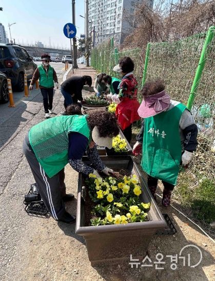 뉴스온경기 | 평택시 신장2동 행정복지센터는 지난 23일 새마을부녀회 회원과 동 직원 등 30여 명이 참여한 가운데, 관내 주요 도로변 및 도시재생구역 일대에 봄꽃 심기 작업을 했다고 밝혔다.