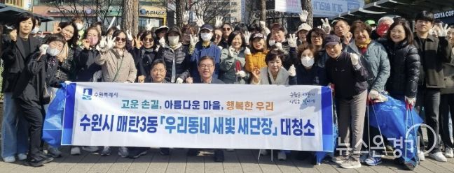 뉴스온경기 | 수원특례시 영통구와 매탄3동 행정복지센터는 지난 24일, 영통구청과 매여울 어린이공원 주변, 매탄 중심상가 일대에서 봄맞이 합동 대청소를 실시했다.