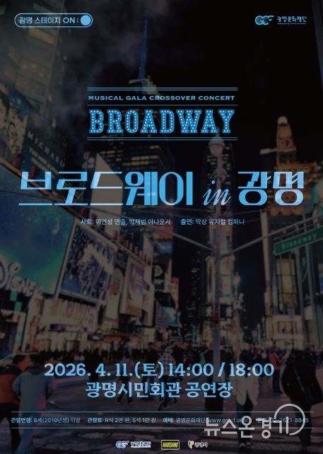 뉴스온경기 | (재)광명문화재단은 오는 4월 11일 오후 2시와 6시, 광명시민회관에서 크로스오버 콘서트 '브로드웨이 IN 광명'을 개최한다.