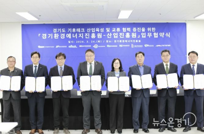 뉴스온경기 | 군포산업진흥원은 24일 김포시 경기환경에너지진흥원에서 진흥원 및 경기도 내 산업진흥원과 함께 기후테크 산업 육성과 기관 간 협력 강화를 위한 업무협약(MOU)을 체결했다고 밝혔다.