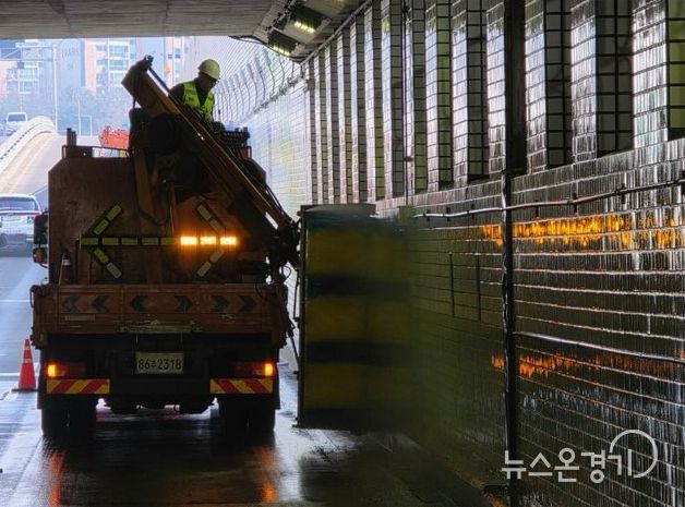 세척 대상은 권선구 관내 지하차도 15개소, 지하보도 3개소, 육교 22개소, 고가도로 4개소 등이다.