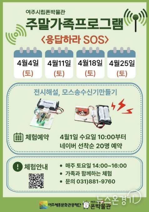 뉴스온경기 | 여주세종문화관광재단 여주시립 폰박물관은 오는 4월 4일부터 25일까지 매주 토요일, 가족과 함께하는 주말 체험 프로그램'응답하라 SOS'를 진행한다.