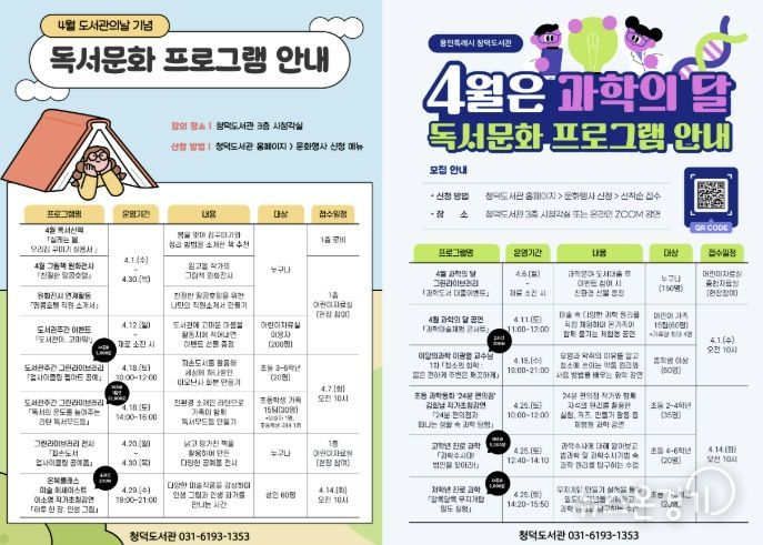 뉴스온경기 | 용인특례시 청덕도서관은 과학의 날과 도서관주간을 맞아 어린이부터 성인까지 모두 즐길 수 있는 여러 독서문화 프로그램을 운영한다고 31일 밝혔다.