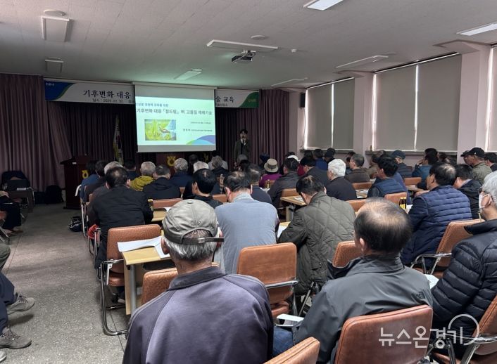 뉴스온경기 | 안성시 남부농업기술상담소가 지난 30일, 금광농협 대회의실에서 지역 농가들을 대상으로 ‘기후변화 대응 고품질 벼 재배기술 교육’을 진행했다. 이번 교육은 금광농협과의 협업으로 마련됐으며, 벼 재배 농업인 83명이 참석해 뜨거운 관심을 보였다.