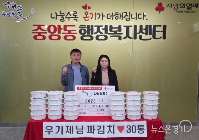 뉴스온경기 | 오산시 중앙동행정복지센터는 지난 6일 우기제 지역사회보장협의체 전(前) 위원장이 지역 내 어려운 이웃들을 위해 직접 담근 파김치 30통을 기탁했다고 밝혔다.