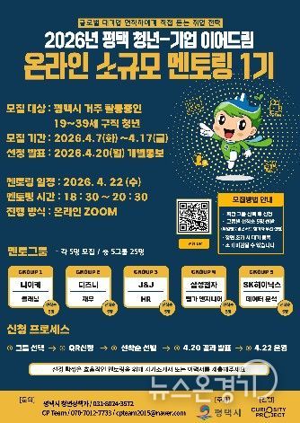 뉴스온경기 | 평택시는 기업 현직자들의 취업 멘토링을 통해 실질적인 취업 준비를 지원하고 인적 네트워크 형성 기회를 제공하기 위한 평택 청년-기업 이어드림 ‘온라인 소규모 멘토링 1기’ 참여자를 오는 4월17일까지 모집한다.
