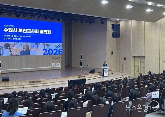뉴스온경기 | 경기도수원교육지원청은 4월 8일 경기과학고등학교 컨퍼런스홀에서 관내 보건교사 240여명을 대상으로 2026년 보건교사회 협의회를 개최하고 지역교육정책현안사업 공유 및 보건 업무 현안에 따른 맞춤형 지원 계획을 발표했다.