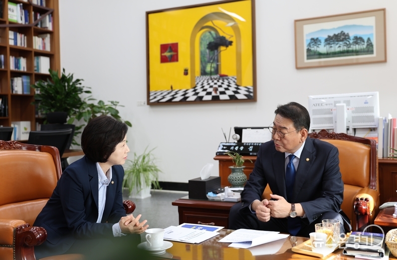 경기 화성시(갑) 송옥주 국회의원(더불어민주당ㆍ국회 농림축산식품해양수산위원회)이 13일 국회에서 김교흥 문화체육관광위원장(문체위원장)을 만나 화성시 무형유산 전수교육관 건립 사업을 위한 국비 예산 지원을 건의했다.