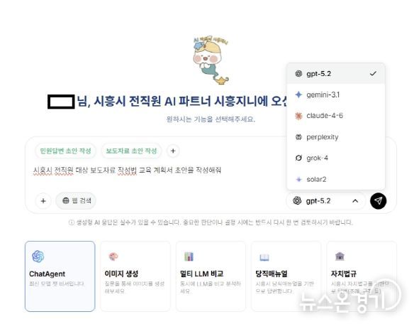 뉴스온경기 | 최근 시흥시 평생학습과 공무원 박씨는 보고서 작성에 소요되는 시간이 크게 줄었다. 통계자료 정리나 기관 대상 발표 자료를 만드는 데에도 자신감이 붙었다. 지난 3월 내부 행정망에 도입된 생성형 인공지능 통합 시스템 ‘시흥지니’ 덕이다.