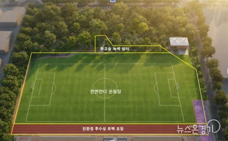 현암초에는 빗물 순환형 천연잔디 운동장이 조성된다. 빗물 순환형 천연잔디는 비가 오면 빗물을 저장해 이를 잔디 생육 등 관리에 활용하는 장치다.