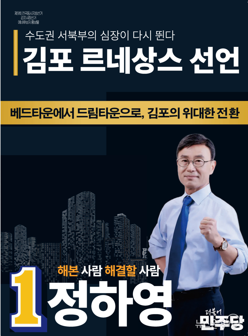 정 후보는 “지금 김포에 필요한 사람은 연습할 시간이 있는 초보가 아니라 이미 문제를 알고 해결책을 실행해 본 숙련된 전문가”라며, “2035 김포 르네상스는 단순한 구호가 아니라 김포의 생존 전략이다. 결선에서 승리해 중단 없는 김포 발전을 반드시 이뤄내겠다”고 강조했다.
