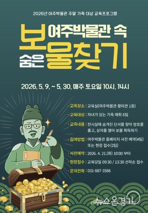 뉴스온경기 | 여주시 여주박물관은 가정의 달 5월을 맞아 가족이 함께 지역 문화유산의 가치를 즐겁게 배우고 체험할 수 있는 ‘여주박물관 속 숨은 보물찾기’를 운영한다.