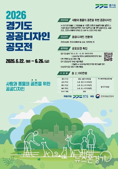 뉴스온경기 | 경기도가 ‘사람과 동물의 공존을 위한 공공디자인’이란 주제로 제20회 ‘2026년 경기도 공공디자인 공모전’을 6월 22일부터 26일까지 개최한다.