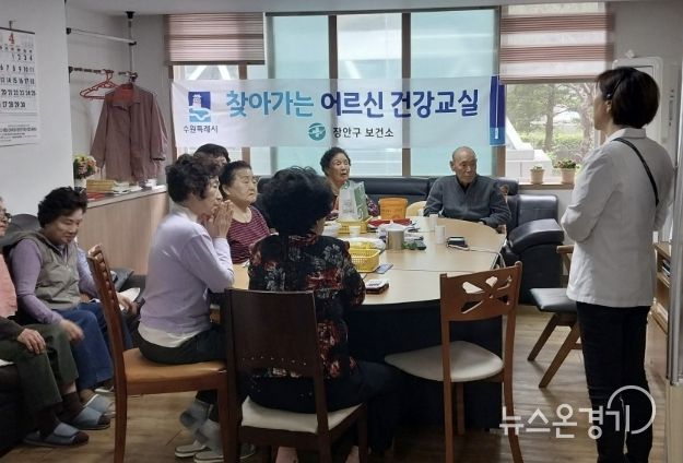 뉴스온경기 | 수원시 장안구 송죽동은 지난 17일, 관내 로얄팰리스 경로당에서 '찾아가는 어르신 건강교실' 프로그램을 운영했다.