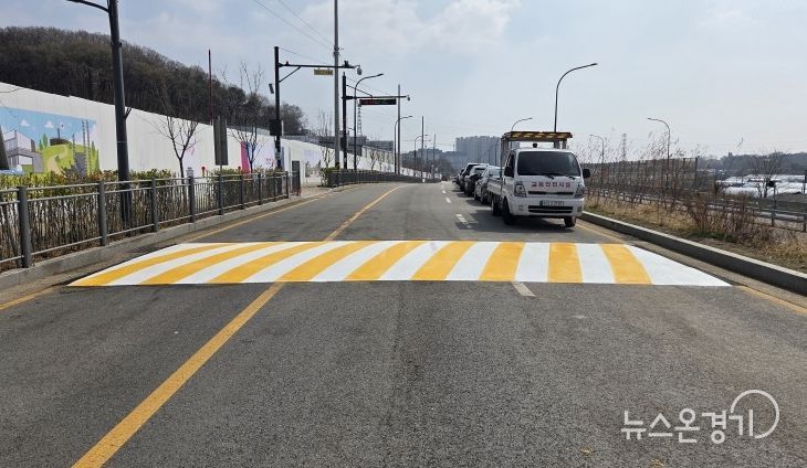 뉴스온경기 | 오산시는 가수초등학교 통학로 안전 확보를 위해 인근 우미린 레이크시티 아파트 공사장 진출입로 주변에 과속방지턱 4개소를 신설했다고 밝혔다.