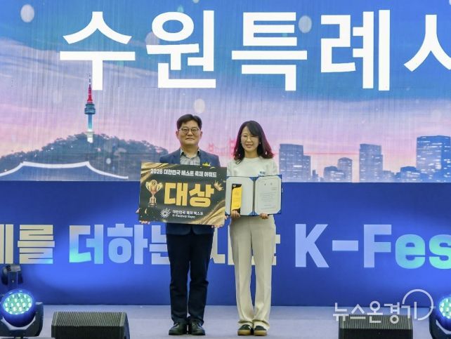 뉴스온경기 | 수원특례시가 ‘제6회 대한민국 축제 엑스포 베스트 축제 어워드’에서 기초자치단체 부문 대상을 받았다. 시상식은 19일 수원컨벤센센터에서 열렸다.