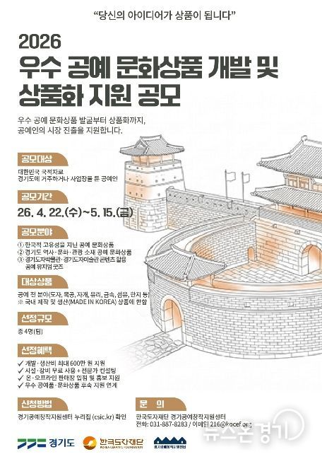 뉴스온경기 | 한국도자재단이 ‘2026 공예 문화상품 개발 및 상품화 지원 사업’을 본격 추진한다고 22일 밝혔다.