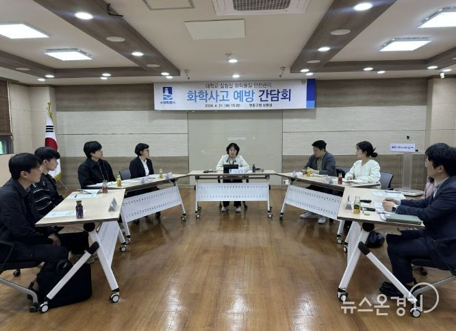 뉴스온경기 | 수원특례시는 21일 영통구청 상황실에서 관내 대학교 안전관리자들과 ‘연구실험실 화학사고 예방 간담회’를 열고, 사고 예방·대응 방안을 논의했다.