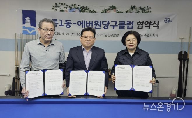뉴스온경기 | 수원시 영통구 영통1동 행정복지센터와 영통1동 주민자치회는 지난 21일, 주민자치센터 프로그램의 다양성과 전문성을 강화하기 위해 관내 민간체육시설인 에버원당구클럽과 업무협약을 체결했다.