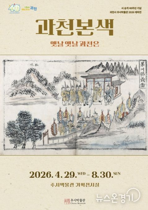 뉴스온경기 | 과천시 추사박물관은 시 승격 40주년을 기념하여 ‘2026 테마전 '과천본색–옛날 옛날 과천은'’을 개최한다고 밝혔다. 이번 전시는 4월 29일 오후 3시 개막식을 시작으로 8월 30일까지 추사박물관 기획전시실에서 진행된다.