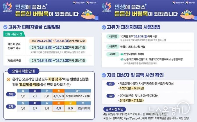 뉴스온경기 | 안양시는 국제유가 급등에 따른 시민 생활 부담 완화를 위한 ‘고유가 피해지원금’ 신청을 이달 27일부터 받는다고 22일 밝혔다.