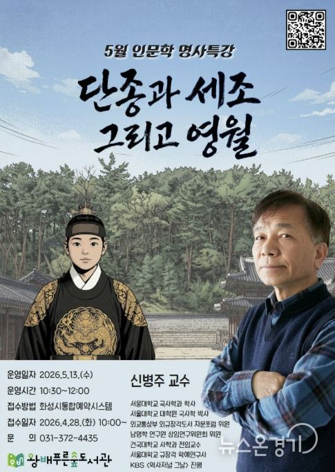 뉴스온경기 | 화성시문화관광재단 운영하는 왕배푸른숲도서관이 오는 5월 13일, 지역 주민들을 위해 역사학자 신병주 교수를 초청하여 5월 인문학 명사특강을 개최한다.