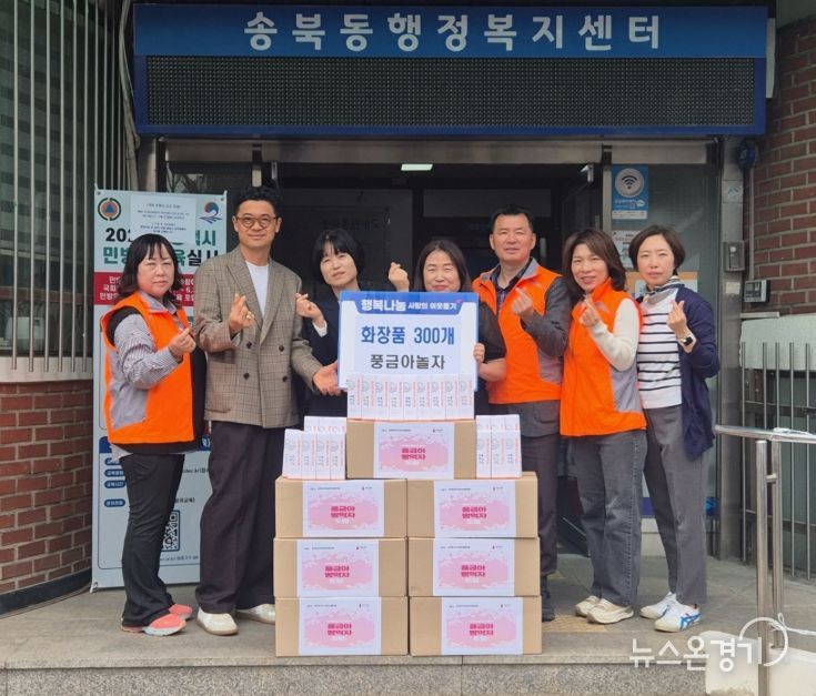 뉴스온경기 | 풍금아놀자는 지난 22일 화장품 300개를 평택시 송북동 행정복지센터에 전달했으며, 기부된 화장품은 송북동 내 취약계층 가구에 전달될 예정이다.