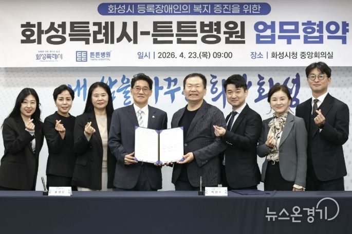 뉴스온경기 | 화성특례시는 23일 본관 2층 중앙회의실에서 튼튼병원과 화성시 등록장애인의 건강한 생활 지원과 삶의 질 향상을 위한 업무협약을 체결했다.