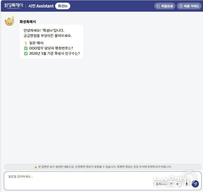 뉴스온경기 | 화성특례시는 시민 체감형 행정서비스 강화를 위해 23일부터 ChatGPT 기반 대화형 AI 검색 서비스 ‘화성in’을 정식 운영한다.