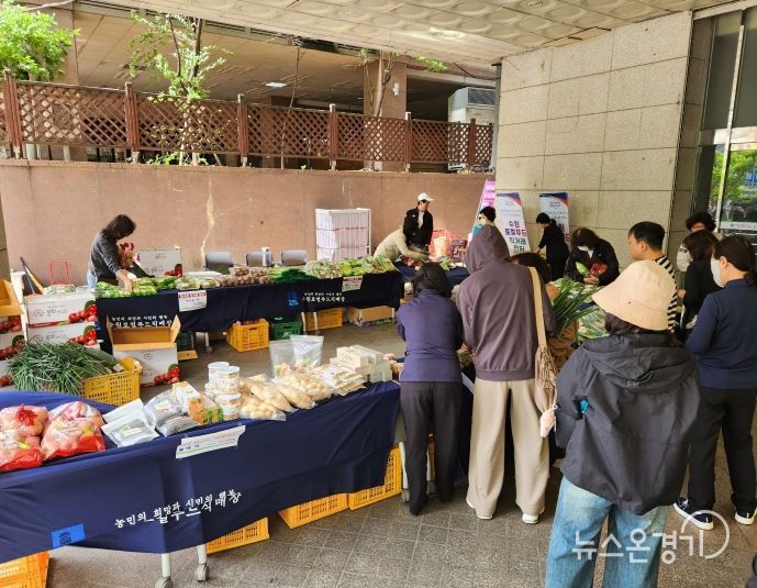 뉴스온경기 | 수원로컬푸드가 23일 한국마사회 수원지부에서 ‘시민에게 찾아가는 직거래 장터’를 운영했다.