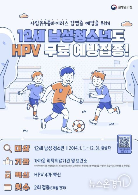 뉴스온경기 | 안산시는 질병관리청 방침에 따라 내달 6일부터 사람유두종바이러스(HPV) 국가예방접종 지원 대상을 12세 남성 청소년까지 확대한다고 24일 밝혔다.