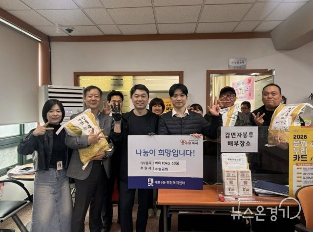 뉴스온경기 | 수원시 권선구 소재 수성교회는 세류3동행정복지센터에 쌀 50포를 기부하며, 지역 내 어려운 이웃을 위한 따뜻한 나눔을 실천했다.