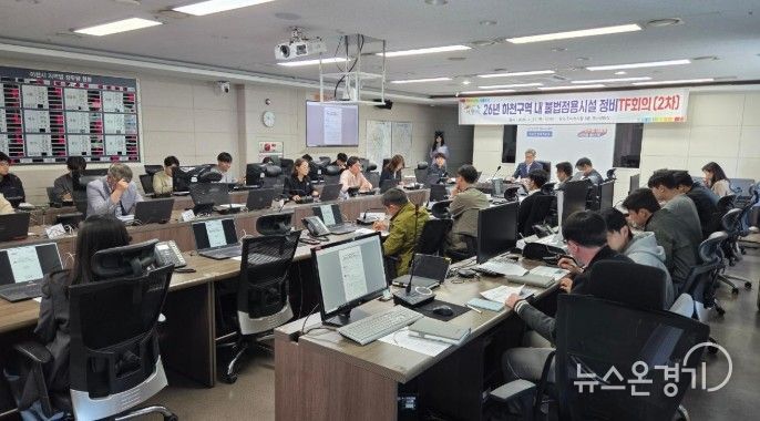 뉴스온경기 | 이천시는 지난 4월 23일 시청 재난상황실에서 박종근 이천부시장 주재로 ‘하천 및 주변 지역 불법시설 정비 전담반(TF) 회의(2차)’를 개최하고, 하천 및 주변 지역 내 불법시설물에 대한 전수조사 및 관리 강화 방안을 집중적으로 논의했다.