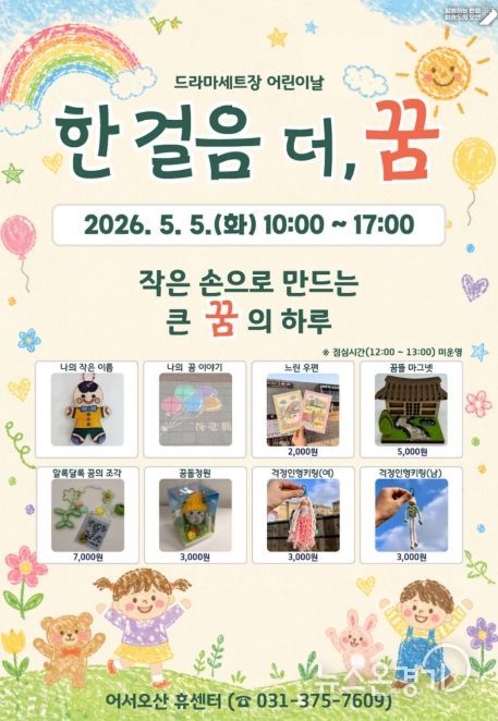 뉴스온경기 | 오산시는 오는 5월 5일 어린이날을 맞아 오산 드라마세트장 일원에서 어린이와 가족이 함께 즐길 수 있는 체험 프로그램 ‘한 걸음 더, 꿈’을 운영한다고 밝혔다.