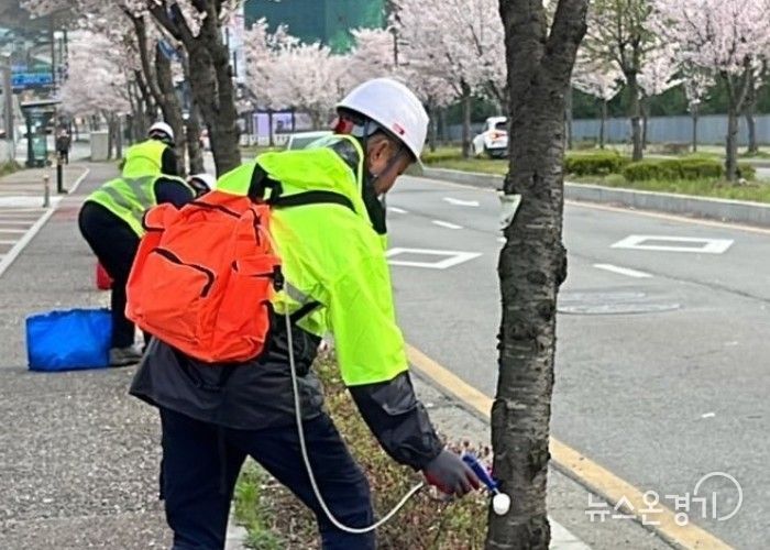 뉴스온경기 | 화성특례시 만세구는 최근 증가하는 식엽성 해충 피해에 대응하기 위해 주요 벚나무길을 중심으로 수간주사 방제를 실시했다고 27일 밝혔다.
