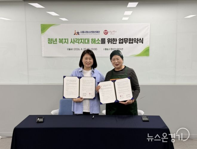뉴스온경기 | (재)시흥시청소년청년재단은 지난 4월 25일 나눔자리문화공동체와 지역의 청년 복지 사각지대를 해소하고 고립·은둔 청년 지원을 강화하기 위한 업무협약(MOU)을 체결했다고 밝혔다.