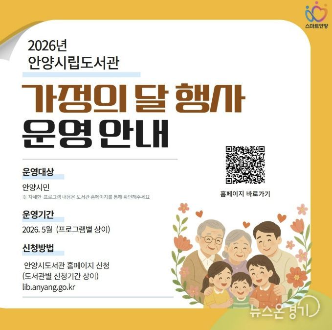 뉴스온경기 | 안양시도서관은 5월 가정의 달을 맞아 어린이와 부모가 함께하는 체험프로그램, 가족공연, 인문학 강연, 생활문화 강좌, 전시 등 다양한 행사를 마련했다.