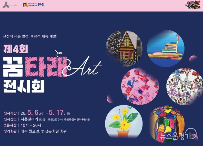 뉴스온경기 | 안성시 공도 작은미술관 시옷갤러리에서는 오는 5월 6일부터 5월 17일까지 '제4회 꿈타래 Art 전시회'가 개최된다. 내혜홀 꿈타래 연구소가 주최하는 이번 전시는 발달장애 예술인과 그 가족들의 예술 활동을 지역사회에 소개하고, 예술을 통한 소통의 장을 넓히기 위해 마련됐다.