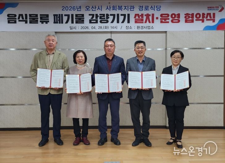 뉴스온경기 | 오산시는 음식물류 폐기물 발생 저감과 자원순환 실천 강화를 위해 지난 28일 관내 사회복지관 경로식당을 대상으로 음식물류 폐기물 감량기기 설치·운영 협약을 체결했다고 밝혔다.