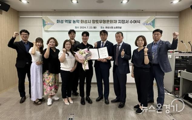 뉴스온경기 | 화성시가 ‘화성 역말 농악’을 화성시 향토문화재 제2호로 지정하고 화성 역말 농악 보유단체로 선정된 화성역말농악보존회에 향토문화재 지정서를 22일 전달했다.