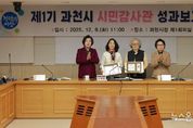 뉴스온경기 | 과천시는 9일 시청 제1회의실에서 신계용 과천시장과 시민감사관 20여 명이 참석한 가운데 ‘2025년 시민감사관 성과보고회’를 개최했다. 과천시의 시민감사관 제도는 법무·회계·복지·시설·환경 등 5개 분야의 외부 전문가 20명이 참여해 시정 감사에 직접 참여하는 시민 참여형 감사제도다. 시는 시민의 시각을 행정에 반영해 공정하고 투명한 감사 시스템을 구축하기 위해 2023년부터 제도를 운영하고 있다. 올해 시민감사관은 자체보조금 특정감사, 과천문화재단 종합감사, 자동심장충격기(AED) 특정감사, 환경사업소 종합감사 등 총 5회의 자체감사에 참여했다. 그 과정에서 시정요구 12건, 제도 개선·주민불편 해소 의견 44건 등 총 56건의 의견을 제시하며 생활 현장에서의 감시 기능을 충실히 수행했다. 보고회에서는 2025년 활동 우수사례가 공유됐으며, 감사활동을 통해 시정 발전에 기여한 보건 분야 김형숙 시민감사관, 복지 분야 전경옥 시민감사관에 대한 표창도 진행됐다. 과천시는 이날 성과보고회를 통해 올해 운영 성과를 점검하고, 2026년 시민감사관 운영 계획을 발표했다. 내년에는 ▲생활현장
