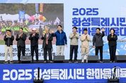 뉴스온경기 | 106만 화성특례시민의 화합을 다지는 ‘2025년 화성특례시민 한마음 체육대회’가 26일 시민들의 열띤 응원과 참여 속에 성황리에 마무리됐다. 이번 대회는 화성시체육회 및 화성시장애인체육회, 각 종목단체의 공동 주최·주관으로 지난 25일부터 26일까지 이틀간 화성종합경기타운 보조경기장 및 종목별 구장에서 개최됐다. 이번 대회에는 육상, 휠체어육상, 축구, 테니스, 배구, 탁구, 씨름, 궁도, 배드민턴, 볼링, 바둑, 족구, 게이트볼, 한궁, 슐런 총 16개 종목 28종별 경기에 29개 읍면동 4천여 명의 선수들이 참여해 선의의 경쟁을 펼쳤다. 26일 오전에는 29개 읍면동별 특색을 뽐내는 입장식에 이어 개회식이 열렸다. 개회식은 정명근 화성특례시장의 대회사 및 주요 내빈의 축사, 박종선 화성시체육회장의 개회 선언, 선수단 대표 선서, 입장상 시상, 축하 공연 등으로 진행됐다. 입장상은 궁중 악대인 대취타를 면민들과 함께 재현한 정남면(조성하 정남면장, 이용기 체육진흥회장, 최학운 이장단협의회장)이 차지했다. 2위는 진안동에게, 공동 3위는 팔탄면·서신면·기배동이 선정됐다.