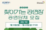 뉴스온경기 | (재)화성시문화관광재단은 1월 12일부터 1월 23일까지 ‘2026 찾아가는공연장’ 참여 공연단체를 모집한다고 밝혔다. ‘찾아가는 공연장’은 화성시의 곳곳에서 다양한 장르의 공연을 제공함으로써 시민들의 일상적인 문화예술 관람을 돕기 위한 사업으로, 2009년부터 시작된 화성시문화관광재단의 대표 문화사업 중 하나다. 지난 2025년도에는 공개 모집을 통해 40개의 공연단체를 선정했으며, 문화취약계층에 방문공연, 공원 광장 거리공연 등을 통해 다양한 장르의 공연으로 화성시민과 함께했다. ‘2026 찾아가는 공연장’은 약 140회차의 공연을 목표로 운영된다. 이번 공연단체 모집은 3년 이상의 공연활동 경력이 있는 공연단체라면 지역, 장르에 상관없이 신청가능하다. 접수는 1월 12일부터 23일까지 온라인으로만 가능하며, 1차 서류‧영상 심사, 2월 9일~10일 2차 실연‧면담 심사를 거쳐 2월 12일에 최종 선정단체 총 35팀을 발표할 예정이다. 화성시문화관광재단 안필연 대표이사는 “지역과 장르의 제한을 두지 않는 만큼, 화성시 곳곳에서 재능을 뽐내줄 다양한 예술 공연단체들의 많은 관심과 지원을 바란다.