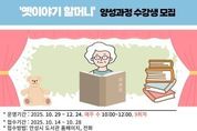 뉴스온경기 | 안성시 중앙도서관은 오는 10월 29일부터 12월 24일까지 매주 수요일 오전 10시부터 12시까지(총9회) 진행되는 『옛이야기 할머니』양성과정의 수강생을 모집한다. 이번 과정은 우리 전통 설화와 구전문화를 이해하고, 이를 바탕으로 어린이들에게 옛이야기를 들려줄 수 있는 이야기 구연 역량을 키우는 특화 교육 프로그램으로 교육은 송경애 강사(한국국학진흥원 및 아름다운 이야기 할머니 교육강사)가 진행하며, 이야기 전달 기법, 발성 훈련, 스토리텔링 실습 등 실질적인 교육 중심으로 구성된다. 참여 대상은 60세 이상 여성 20명으로, 접수는 10월 14일부터 도서관 홈페이지, 전화 또는 방문을 통해 신청할 수 있다. 도서관 관계자는 “지역 어르신들이 삶의 지혜와 전통 이야기를 전하며 세대 간 소통의 다리를 놓는 뜻깊은 과정이 될 것이고 본 과정을 수료한 참여자들은 2026년 ‘책 읽어주기’ 자원봉사 프로그램에 참여할 수 있도록 안내할 계획이다.”라고 전했다.
