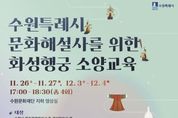 뉴스온경기 | 수원특례시가 문화해설사를 대상으로 화성행궁 고증 연구 결과를 교육해 ‘연구 기반 문화해설’을 정착시킨다. 수원시는 11월 26~27일, 12월 3~4일 4회에 걸쳐 수원문화재단에서 ‘수원특례시 문화해설사를 위한 화성행궁 소양교육’을 한다. 유네스코독일위원회와 유네스코한국위원회가 지원하는 이번 교육에는 수원문화재단·수원화성박물관·수원청소년청년재단 등에서 수원화성과 화성행궁을 해설하는 문화해설사들이 참여한다. 화성행궁 고증 연구의 성과를 해설 현장에 연결하기 위한 교육이다. 연구를 수행한 전문가들이 강사로 나선다. 강의 주제는 ▲화성행궁의 변화와 이중적 기능(이선희 중앙대 교수) ▲1794년 화성행궁 중심 영역의 건축적 변화(이연노 건축문헌고고스튜디오 건축구조실장) ▲화성행궁의 발굴(이승연 건축문헌고고스튜디어 건축고고실장) ▲화성행궁 생활상 고증과 공간 재현(정정남 건축문헌고고스튜디오 대표) 등이다. 수원시는 화성행궁 2단계 복원을 추진하면서 건축물 외형 복원뿐 아니라, 내부 고증에 대한 연구의 필요성을 인식하고, 2023~2024년 ‘화성행궁 생활상 고증 및 재현 방안 연구’를 수행했다