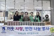 뉴스온경기 | 수원시 권선구 호매실동 새마을부녀회는 지난 26일, 관내 취약계층 가구를 대상으로 나눔의 손길을 전하고자 ‘사랑의 반찬 나눔’ 행사를 진행했다. 이날 행사는 호매실동 행정복지센터에서 진행됐으며 새마을부녀회원들이 직접 만든 △불고기 △무생채 △시래기된장국 등 반찬들을 포장하여 관내 취약계층 40가구에 직접 전달했다. 영양 가득 따뜻한 반찬을 전달받은 주민들은 부녀회 회원들에게 감사의 인사를 전했다. 조창순 새마을부녀회장은 “어느새 겨울이 성큼 다가온 쌀쌀한 날씨에도 불구하고 주위 이웃들에게 온정을 나눌 수 있는 뜻깊은 시간이었다”라며, “호매실동 모든 주민들이 올겨울 건강하게 지내시길 바란다”라고 말했다. 이정훈 동장은 “이른 아침부터 봉사한 새마을부녀회에 감사드린다”라며 “앞으로도 다양한 나눔 행사를 통해 온정 넘치는 호매실동이 될 수 있도록 노력하겠다”라고 전했다.