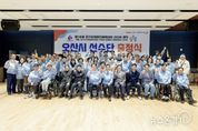 뉴스온경기 | 오산시장애인체육회는 ‘제16회 경기도장애인체육대회 2026 광주’에 참가하는 오산시 선수단 출정식을 지난 10일 오산오색문화체육센터에서 개최했다고 밝혔다. 이날 출정식에는 이권재 오산시장을 비롯해 시의원, 장애유형별 단체장, 종목별 가맹단체장 및 임원 등 내빈과 선수단 등 130여 명이 참석해 선수들의 사기를 북돋우고 선전을 다짐했다. 오산시 선수단은 이번 대회에 당구, 론볼, 배드민턴, 보치아, 볼링, 역도, 조정, 탁구, 파크골프, 육상, 수영 등 11개 종목에 총 75명이 참가해 그동안 갈고닦은 기량을 펼칠 예정이다. 출정식은 개회선언을 시작으로 격려사와 축사, 선수단 소개, 단기 수여, 선수대표 선서, 필승구호 제창, 후원기금 및 격려금 전달 순으로 진행됐다. 특히 선수대표는 정정당당한 경기와 최선을 다하는 자세로 임할 것을 다짐하며 선수단의 결의를 다졌다. 이권재 오산시장은 “힘든 훈련을 이겨내고 이 자리에 선 선수들이 자랑스럽다”며 “부상 없이 안전에 유의해 최고의 기량을 발휘하고 돌아오길 바란다”고 격려했다. 한편, ‘제16회 경기도장애인체육대회 2026 광주